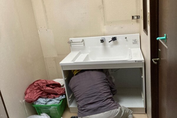 天井壁床張り替え、白を基調とした柔らかな光の良い洗面所となりました😊👌‼️